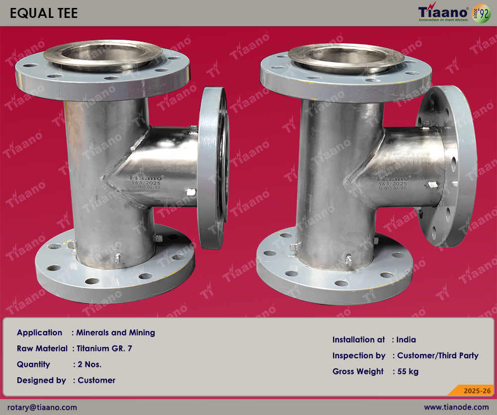 Specify titanium Gr.7 equal tee components from day one and lock in 15+ years of leak-free operation in the most aggressive mineral processing environments.