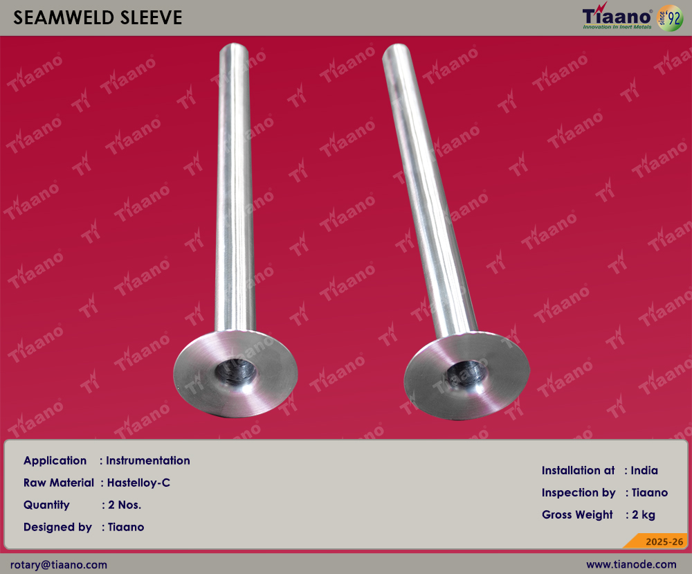 Ti Anode Fabricators Pvt. Ltd. (Tiaano) is a globally respected manufacturer specializing in corrosion-resistant, precision-engineered components for advanced industrial applications. With deep expertise in titanium, nickel alloys, and exotic materials, Tiaano is recognized for delivering exceptionally crafted Seamweld Sleeves tailored for high-performance Instrumentation systems.