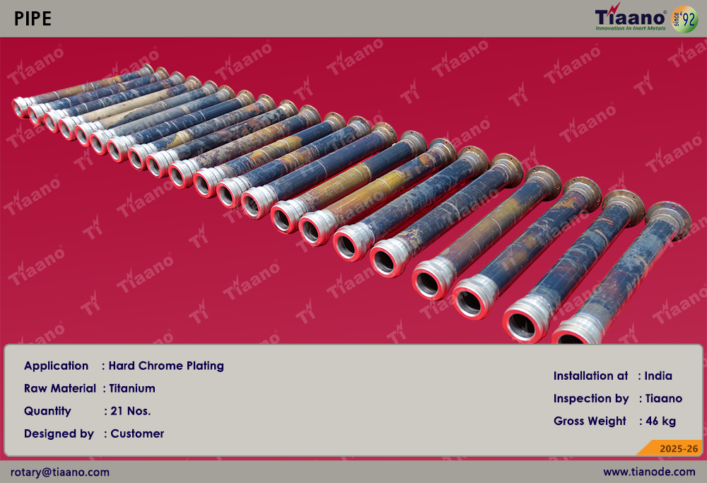 The Titanium Pipe for Hard Chrome Plating has been successfully installed in India, supporting industries that demand reliability, safety, and long service life in their plating operations.