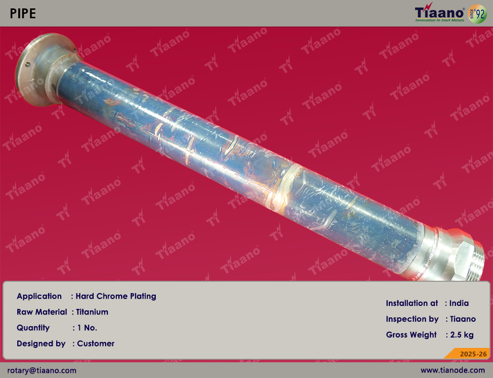 The Titanium Pipe for Hard Chrome Plating has been successfully installed in India, supporting industries that demand reliability, safety, and long service life in their plating operations.